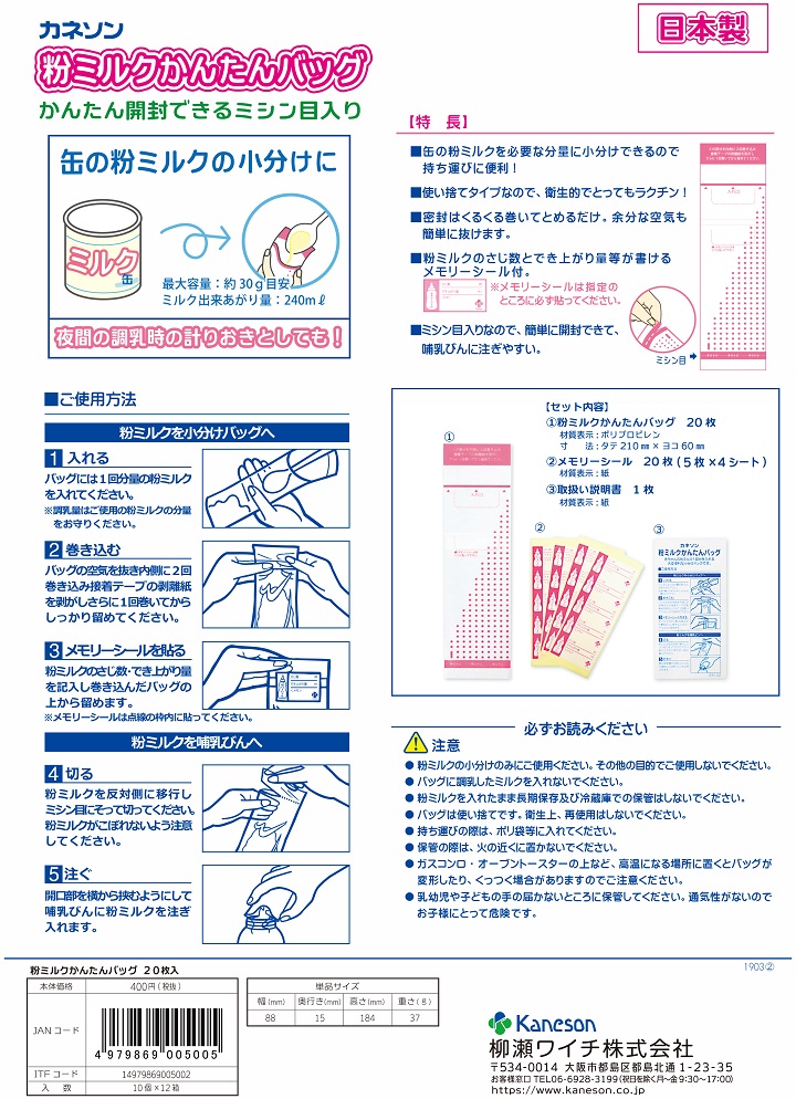 【KANESON】便攜式奶粉儲(chǔ)存袋